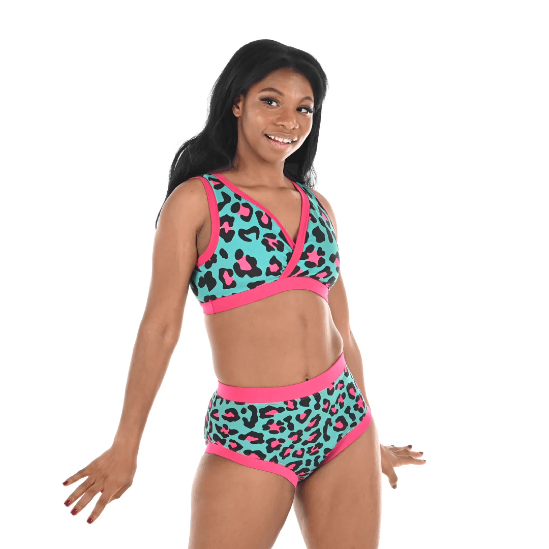 Feel fierce in this Hot Leopard Bra! Teal and hot pink are the ideal colour combo for this wild design. This bra is crying out to be shown off. Match with your faves from the rest of the Hot Leopard collection and you have an iconic look.